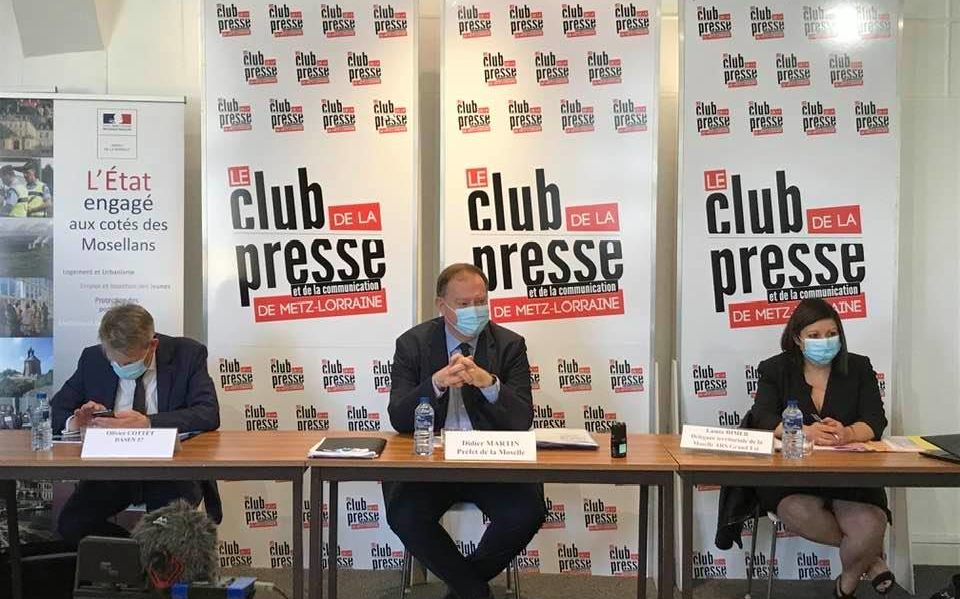 Conférence de presse de Didier Martin, préfet de la Moselle, Lamia Himer ARS57 et Olivier Cottey DASEN57 pour faire un…